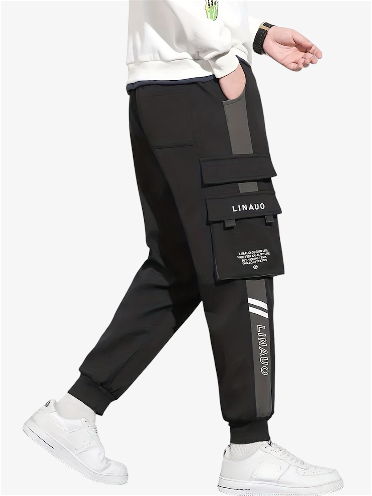 Make a bold statement in BearFit’s LINAUO Street Mode Cargo Pants. Crafted with contrast grey panels, oversized flap pockets, and LINAUO signature branding, these joggers scream confidence. A staple for fashion-forward individuals who live and breathe street culture.